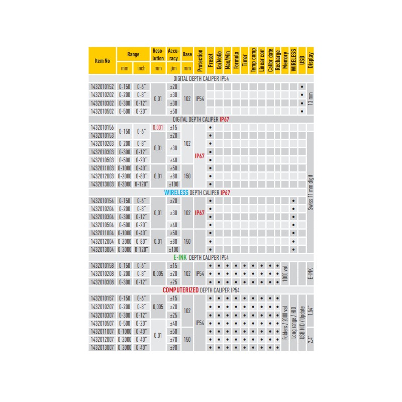 Głębokościomierz elektroniczny suwmiarkowy 0-200 x 0,01 mm IP67 MICROTECH z akredytowanym świadectwem producenta