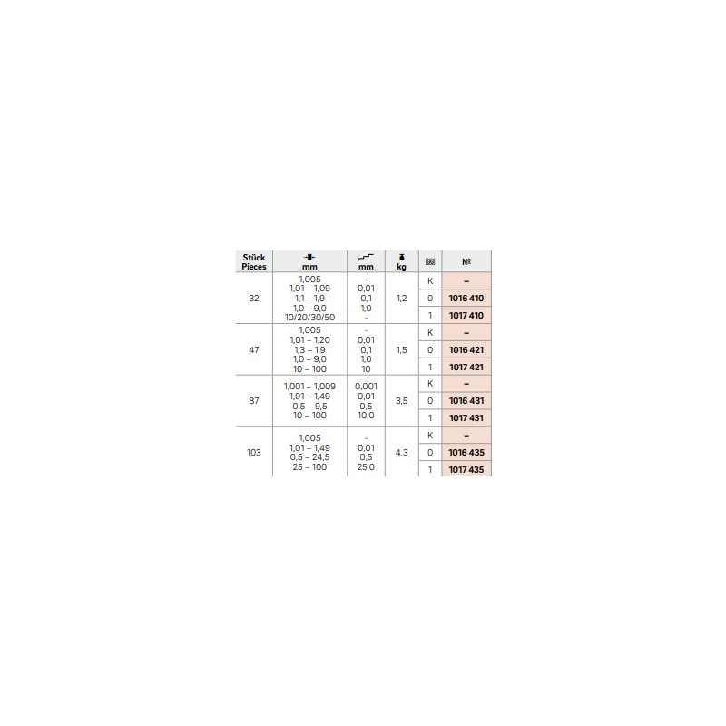 Zestaw płytek wzorcowych ceramicznych 103 sztuki 1,005 -100 mm klasa 1 ULTRA PRAZISION ze świadectwem wzorcowania