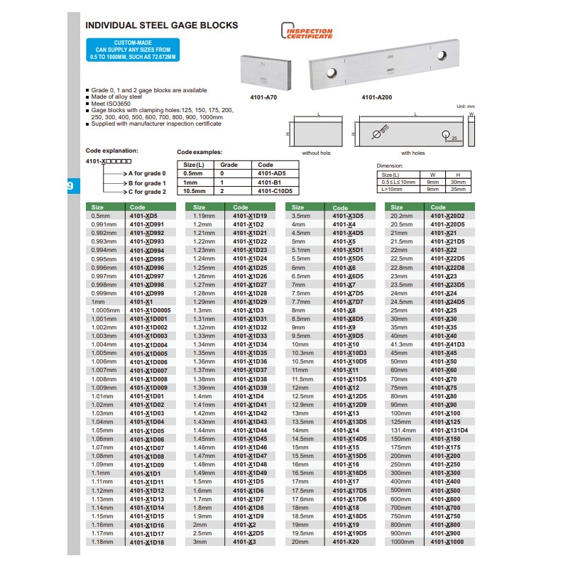 Płytka wzorcowa 100mm klasa 1 INSIZE ze świadectwem wzorcowania