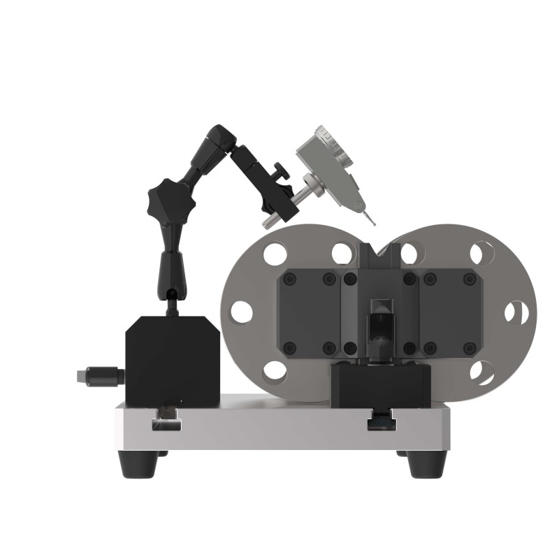 Przyrząd do pomiaru współosiowości RPGR może być stosowany do pomiaru współosiowości okrągłych elementów o średnicy do 240 mm. Obie rolki są bezstopniowo przesuwane na płycie podstawowej. Jedna z rolek ma regulowaną wysokość, co pozwala na kompensację różnych średnic elementu. Elementy o różnych kształtach można łatwo sprawdzić.